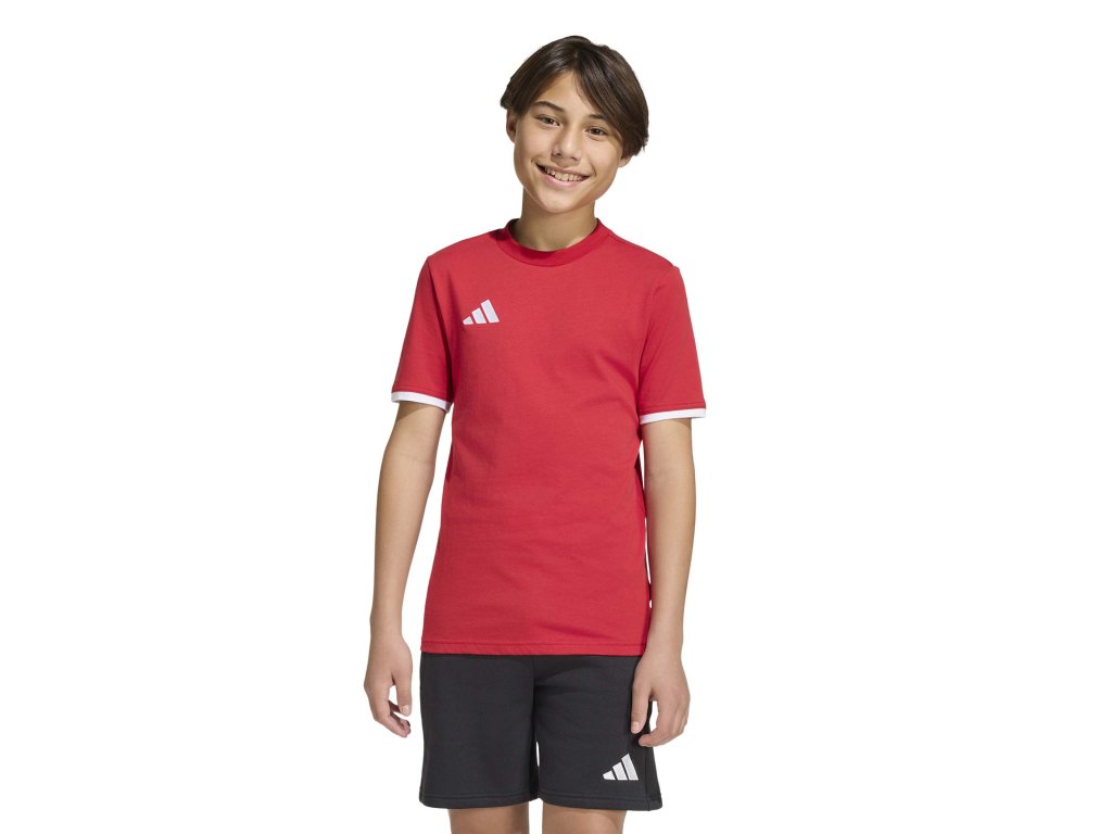 Jednoduché dětské tričko adidas Entrada 26 ze 100% bavlny BCI je ideální pro sport, školu i běžné nošení.