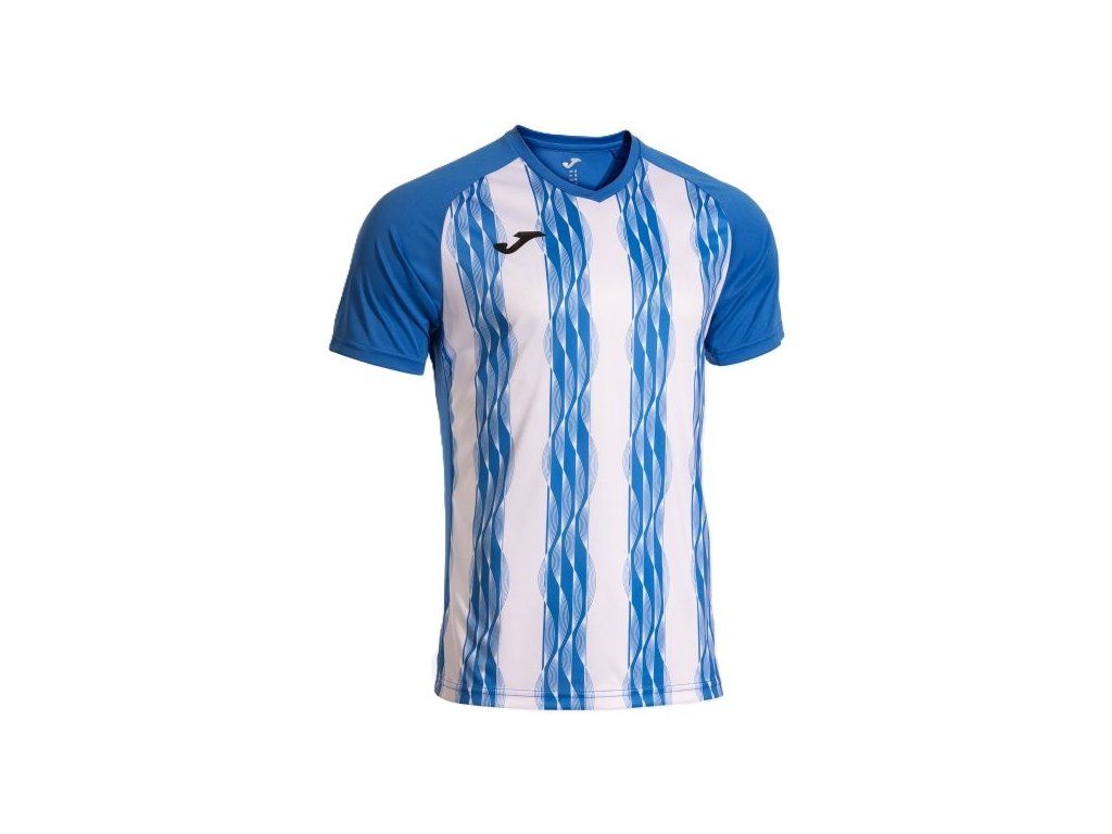 Sportovní dres Joma s krátkým rukávem. Sportovní dres s krátkým rukávem a kulatým výstřihem. Přední a zadní část je vyrobena z barvené nitě, přičemž do horní části jsme přidali barvenou látku pro sítotisk. Vyšívané logo na přední straně. Vlastnosti: