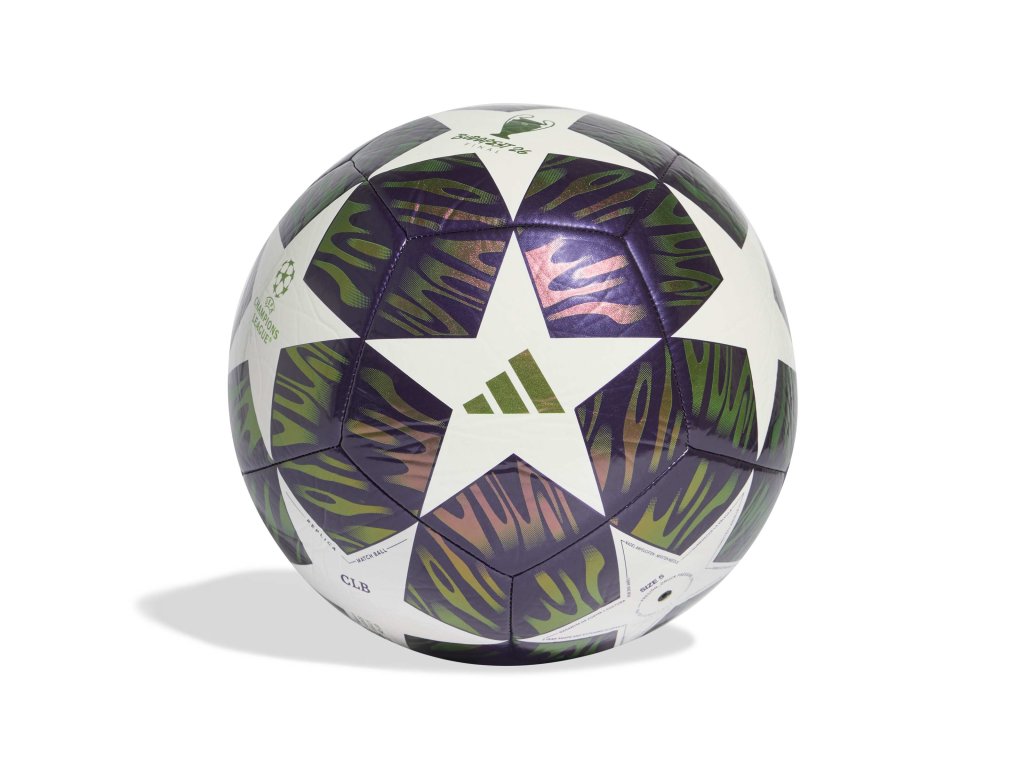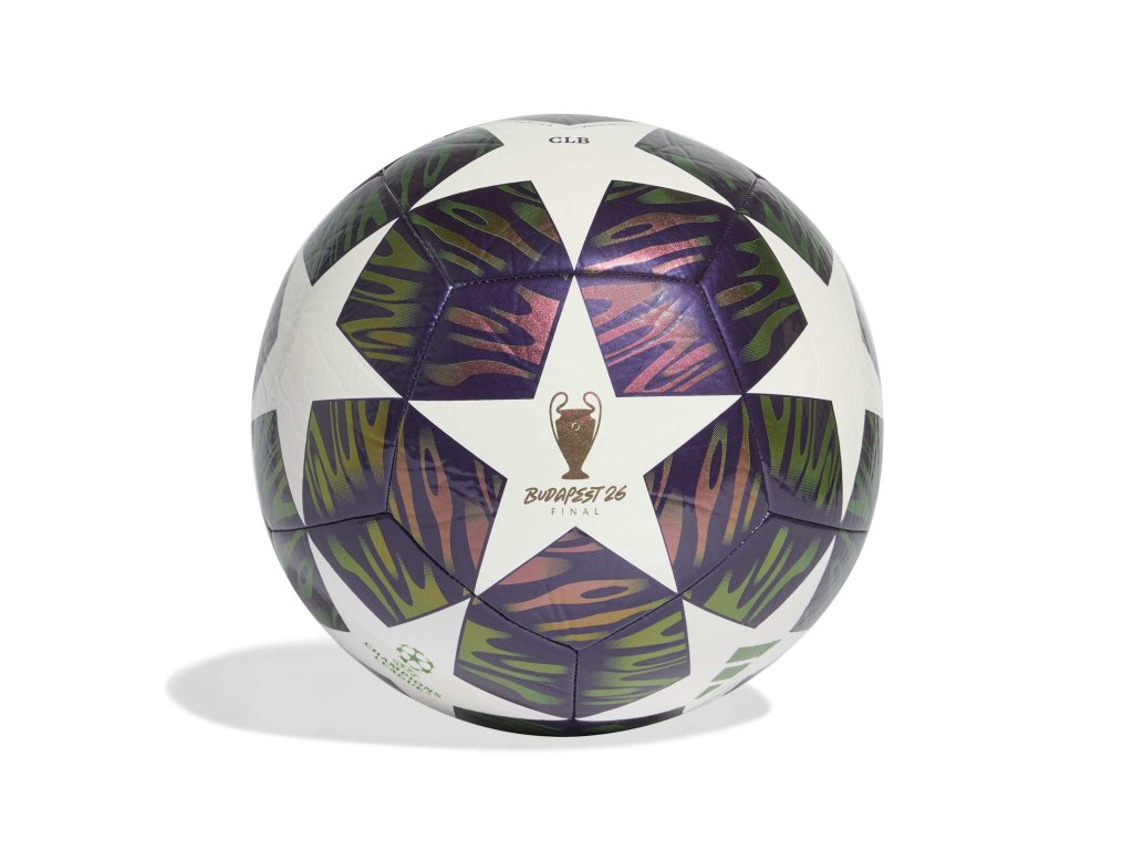 Fotbalový míč adidas UEFA Champions League Final Club v designu Ligy mistrů se strojově šitou konstrukcí a butylovou duší. Odolný, pohodlný na kontakt a ideální pro rekreační hru i trénink.