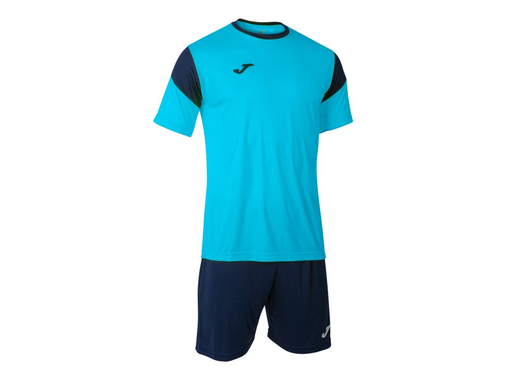 Sportovní set skládající se z trička s krátkým rukávem a kraťasů. Tato sportovní souprava byla navržena tak, aby vás doprovázela při tréninku nebo při zápase. Komplet nabízí pohodlí, lehkost, prodyšnost a proto tě nebude omezovat v pohybu. Dres s krátkým rukávem se vyznačuje elastickým kulatým výstřihem pro volný pohyb. Navíc má kontrastní barevnou linku na horní části hrudi, která vystupuje z hlavní barvy a ladí se zbytkem detailů. Kraťasy mají elastický pas, který je v pase fixován, takže kraťasy při hře nekloužou. Ve skutečnosti se ještě více hodí s nastavitelnou vnitřní šňůrkou. Jeho design je základní a hladký, v jedné barvě. Tato sportovní souprava je vyrobena z lehké látky, která vám ve dnech s vysokými teplotami zabrání, abyste se rozpálili. Zároveň je odolný, takže se nebudete muset starat o to, kolikrát ho budete muset prát. Další z jeho výhod je, že oba oděvy pomáhají odvádět pot. Fotbalistovo tělo zůstane chladné a suché, aby ho nic nerozptylovalo.