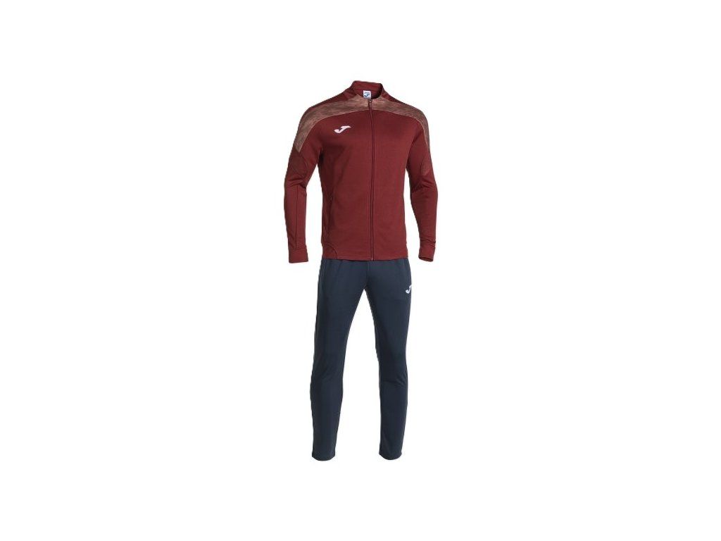 Tepláková souprava Joma. Tepláková souprava Souprava Joma Championship VIII je vyrobena ze 100% recyklovaného interlockového polyesteru pro snížení dopadu na životní prostředí. Skládá se z bundy a kalhot. Bunda má kapsy na zip a má žebrované manžety a lem pro maximální pohodlí. Kalhoty mají nastavitelný elastický pas s pasovou šňůrkou. Na lemu je zip pro snadné nazouvání nebo svlékání. Vlastnosti: