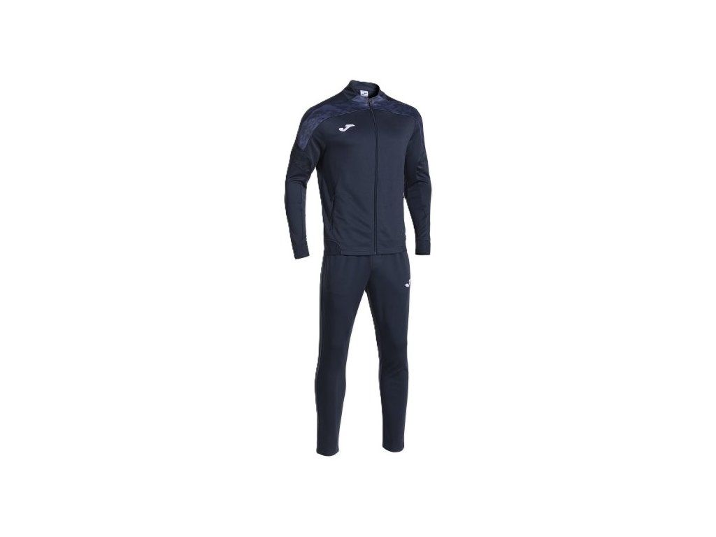 Tepláková souprava Joma. Tepláková souprava Souprava Joma Championship VIII je vyrobena ze 100% recyklovaného interlockového polyesteru pro snížení dopadu na životní prostředí. Skládá se z bundy a kalhot. Bunda má kapsy na zip a má žebrované manžety a lem pro maximální pohodlí. Kalhoty mají nastavitelný elastický pas s pasovou šňůrkou. Na lemu je zip pro snadné nazouvání nebo svlékání. Vlastnosti: