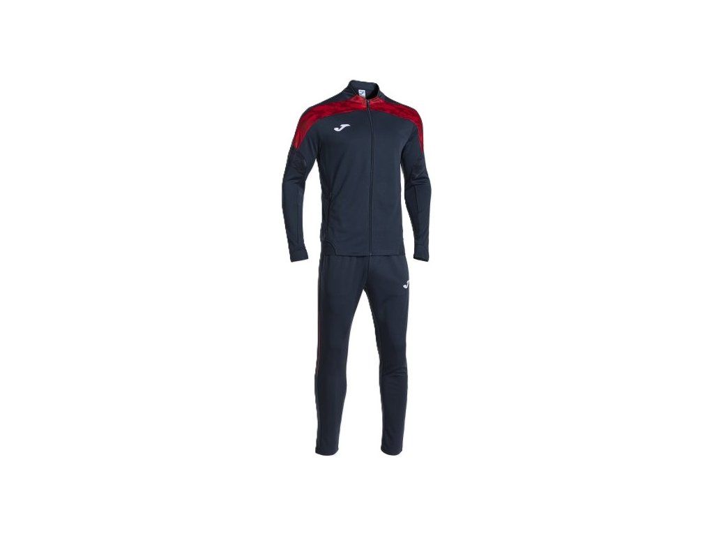 Tepláková souprava Joma. Tepláková souprava Souprava Joma Championship VIII je vyrobena ze 100% recyklovaného interlockového polyesteru pro snížení dopadu na životní prostředí. Skládá se z bundy a kalhot. Bunda má kapsy na zip a má žebrované manžety a lem pro maximální pohodlí. Kalhoty mají nastavitelný elastický pas s pasovou šňůrkou. Na lemu je zip pro snadné nazouvání nebo svlékání. Vlastnosti:
