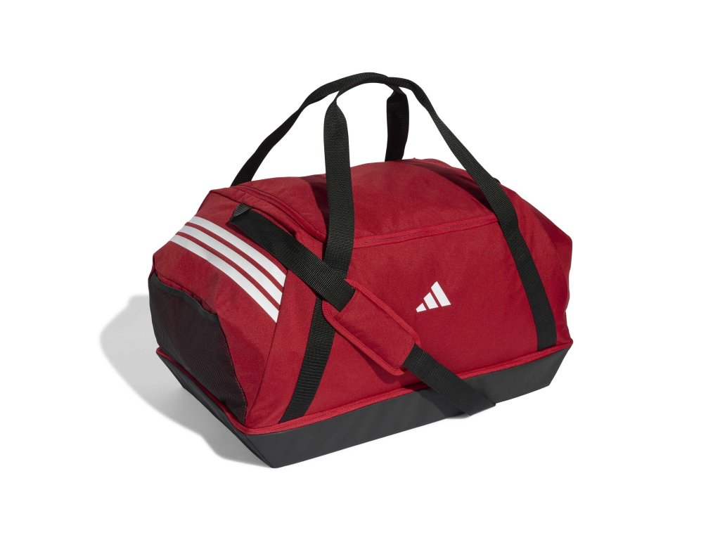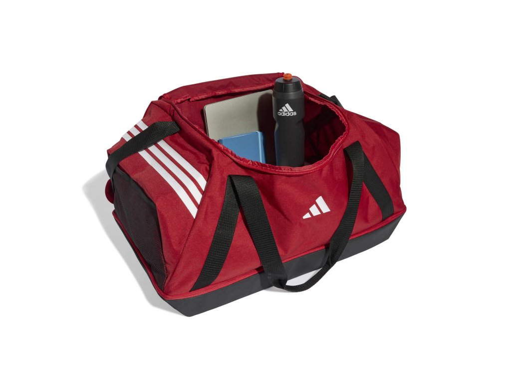 adidas Tiro Duffle Bag Large s dolní přihrádkou je navržena pro maximální objem a odolnost. Umožňuje přehledné uspořádání sportovní výbavy, oddělení obuvi a pohodlné přenášení při tréninku, zápasech i delších cestách.