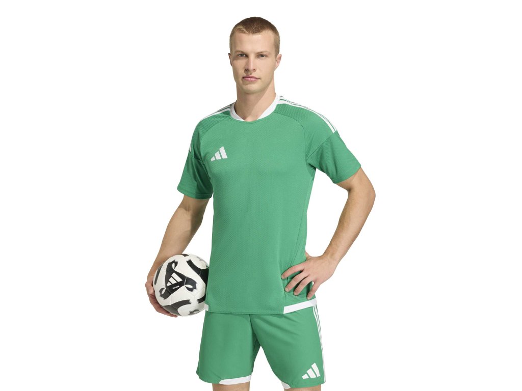 Adidas Tiro 26 Competition Match Jersey je fotbalový zápasový dres z lehkého a prodyšného materiálu, který zajišťuje pohodlí a efektivní odvod potu během hry. Má sportovní střih pro volnost pohybu a moderní design s klasickými třemi pruhy Adidas. Ideální volba pro soutěžní utkání i tréninky.